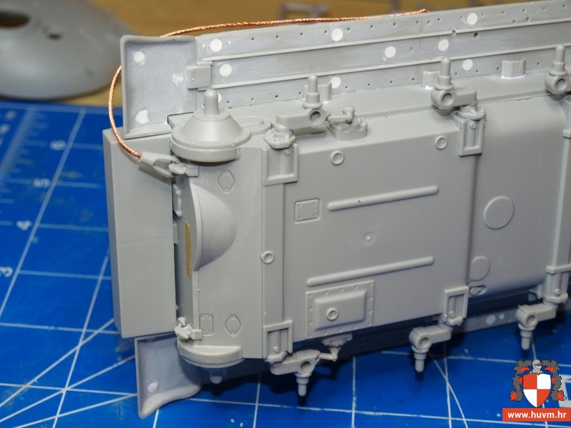 Posebno hvalim kako su označena mjesta na kupoli, gdje se lijepe dijelovi. Dobije se i pristojan PE i nije premekan. Od dodatni materijala koristim Friulmodel gusjenice i Legend set za IDF vozila. Od dodatnih radova odradio sam vanjske vodove rezervoara i to od bakrene žice.
